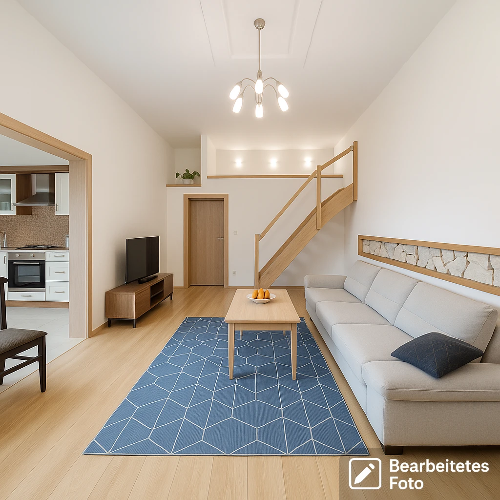 - Das erste Foto in unserer Galerie wurde leicht bearbeitet, um zu veranschaulichen, wie die Wohnung aussehen könnte – beispielsweise durch eine geänderte Wandfarbe. Die nachfolgenden Bilder zeigen den tatsächlichen Zustand der Immobilie.