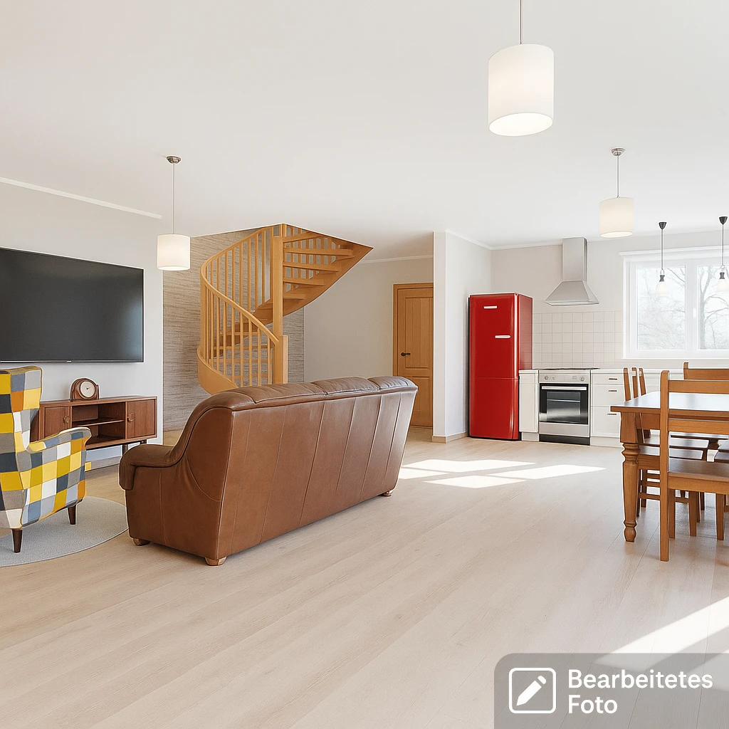 - Das erste Foto in unserer Galerie wurde leicht bearbeitet, um zu veranschaulichen, wie die Wohnung aussehen könnte – beispielsweise durch eine geänderte Wandfarbe. Die nachfolgenden Bilder zeigen den tatsächlichen Zustand der Immobilie.