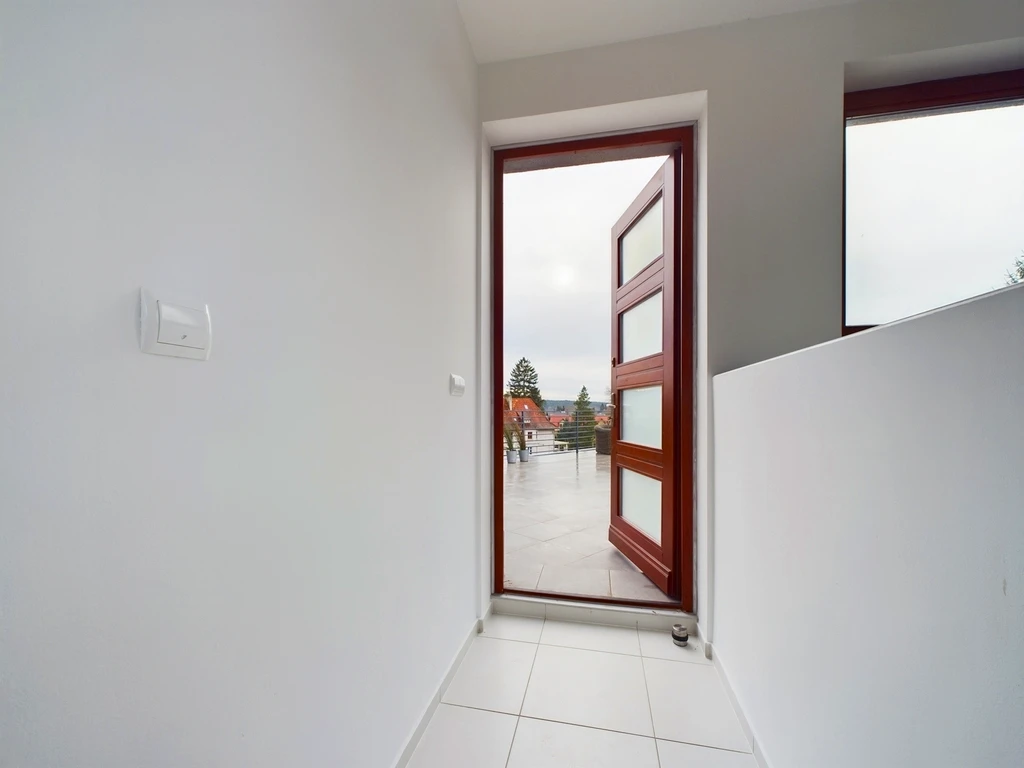 Die eindrucksvolle Terrasse misst ca. 75 m² und lädt mit ihrem Whirlpool zum Entspannen ein – ob beim Frühstück in der Morgensonne oder bei einem Glas Wein am Abend. Von hier aus gelangen Sie durch einen privaten Zugang direkt in den angrenzenden Wald – ein seltener Luxus für Naturliebhaber.