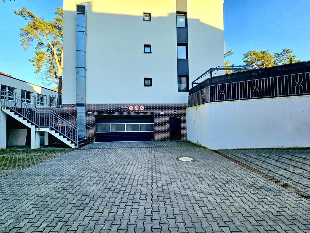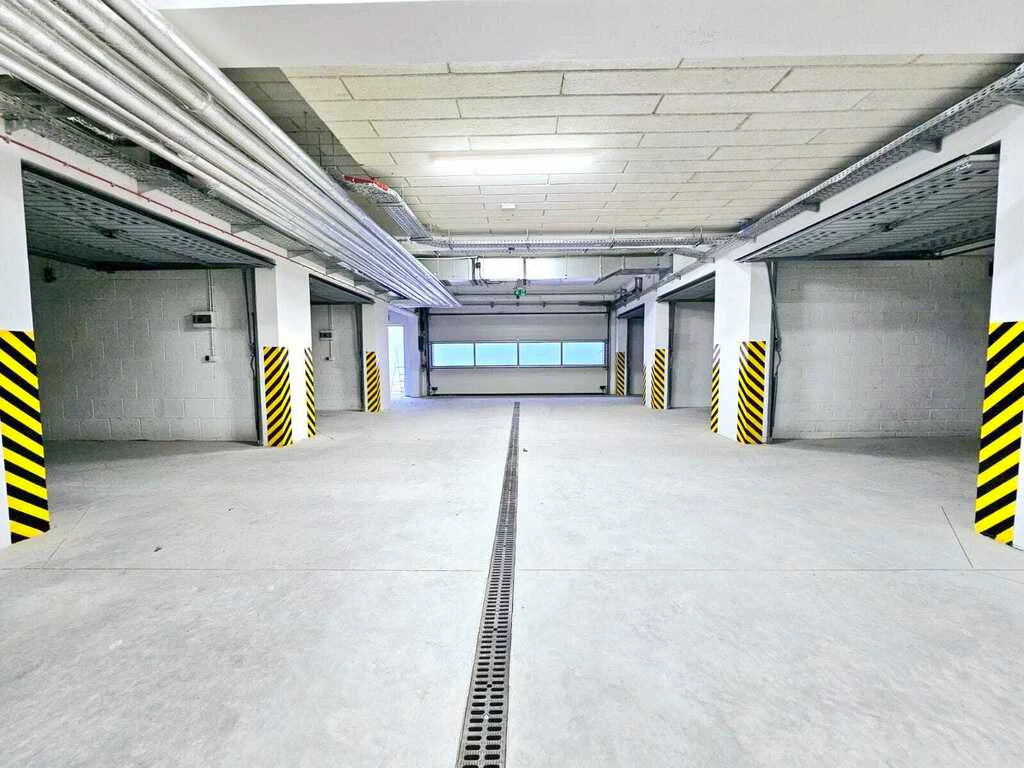 Öffentliche Stellplätze stehen den Bewohnern zur Verfügung. Zusätzlich können abschließbare Garagen (ca. 18 m²), die sich in einer unter dem Gebäude gelegenen Halle befinden, zum Preis von €14.020 (PLN 60.000) erworben werden (nicht obligatorisch).
