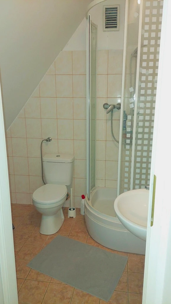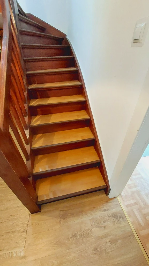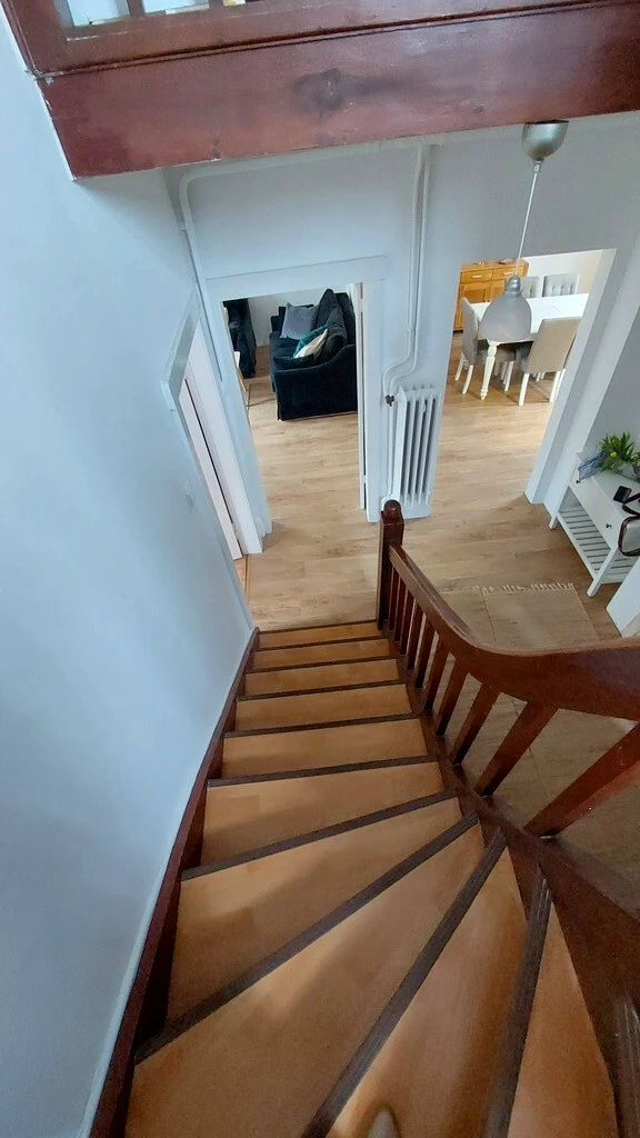 Hier befinden sich drei weitere Schlafzimmer, eine zweite, kleine Küche, ein Badezimmer sowie ein zusätzliches WC. Die hochwertigen Holztreppen verleihen dem Haus ein warmes Ambiente.