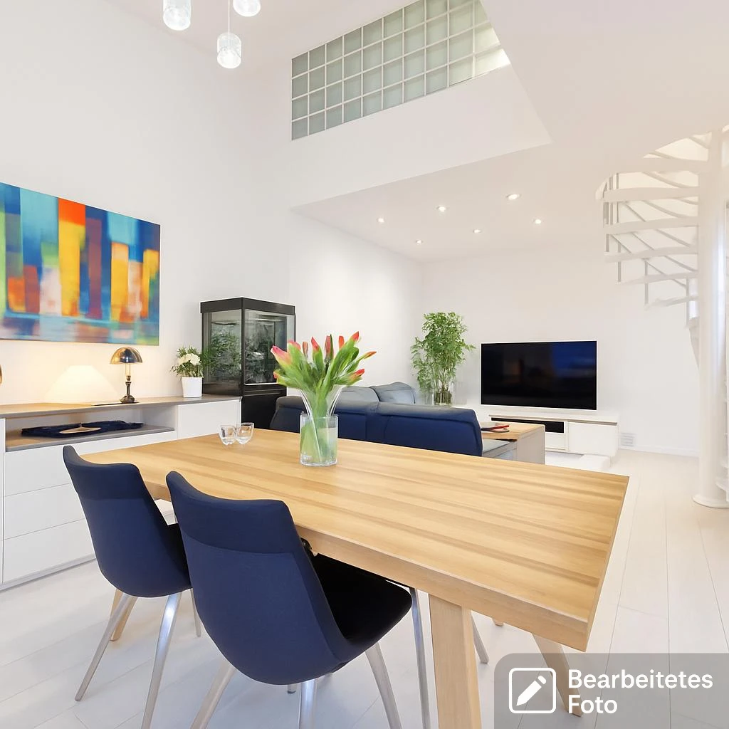 - Großzügiger, offener Wohnbereich mit Küchenzeile und Essbereich