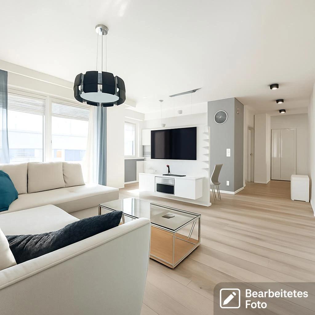- Das erste Foto in unserer Galerie wurde leicht bearbeitet, um zu veranschaulichen, wie die Wohnung aussehen könnte – beispielsweise durch eine geänderte Wandfarbe. Die nachfolgenden Bilder zeigen den tatsächlichen Zustand der Immobilie.