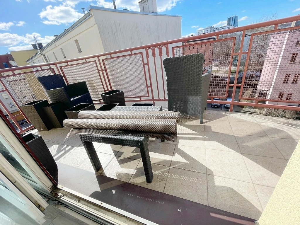 - Balkon: Vom Wohnbereich mit offener Küche gelangt man auf den sonnigen Balkon mit ca. 10 m² Fläche – ideal für entspannte Stunden im Freien.