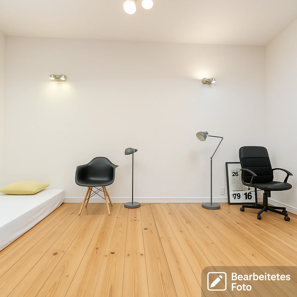 - Das erste Foto in unserer Galerie wurde leicht bearbeitet, um zu veranschaulichen, wie die Wohnung aussehen könnte – beispielsweise durch eine geänderte Wandfarbe. Die nachfolgenden Bilder zeigen den tatsächlichen Zustand der Immobilie.