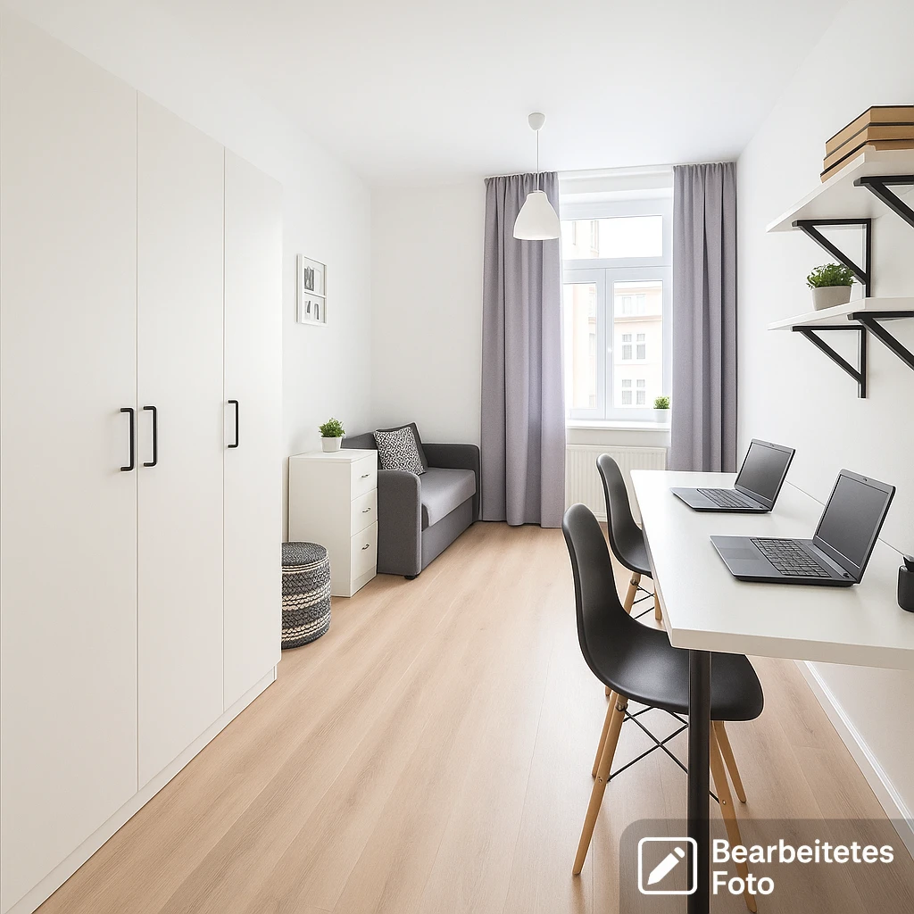 - Das erste Foto in unserer Galerie wurde leicht bearbeitet, um zu veranschaulichen, wie die Wohnung aussehen könnte – beispielsweise durch eine geänderte Wandfarbe. Die nachfolgenden Bilder zeigen den tatsächlichen Zustand der Immobilie.