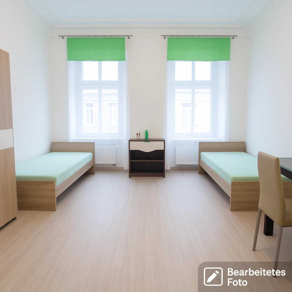 - Das erste Foto in unserer Galerie wurde leicht bearbeitet, um zu veranschaulichen, wie die Wohnung aussehen könnte – beispielsweise durch eine geänderte Wandfarbe. Die nachfolgenden Bilder zeigen den tatsächlichen Zustand der Immobilie.