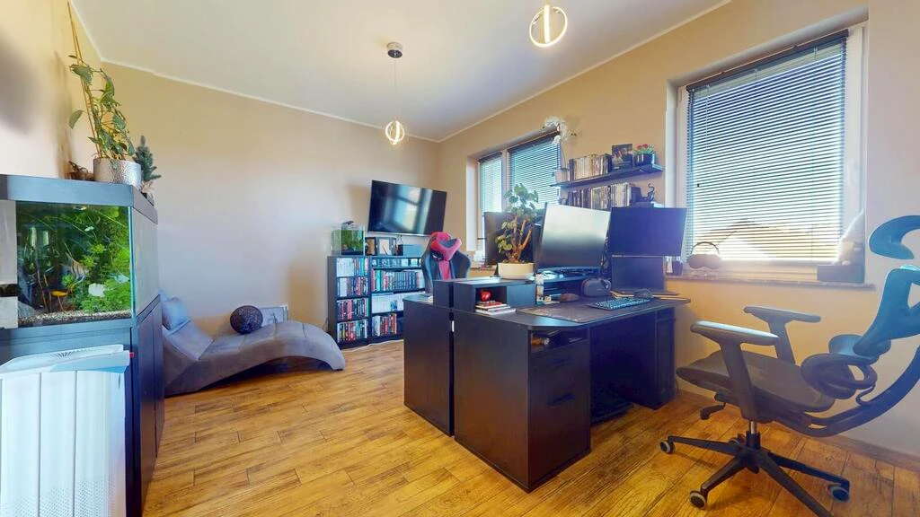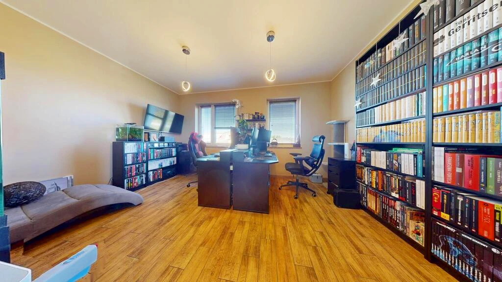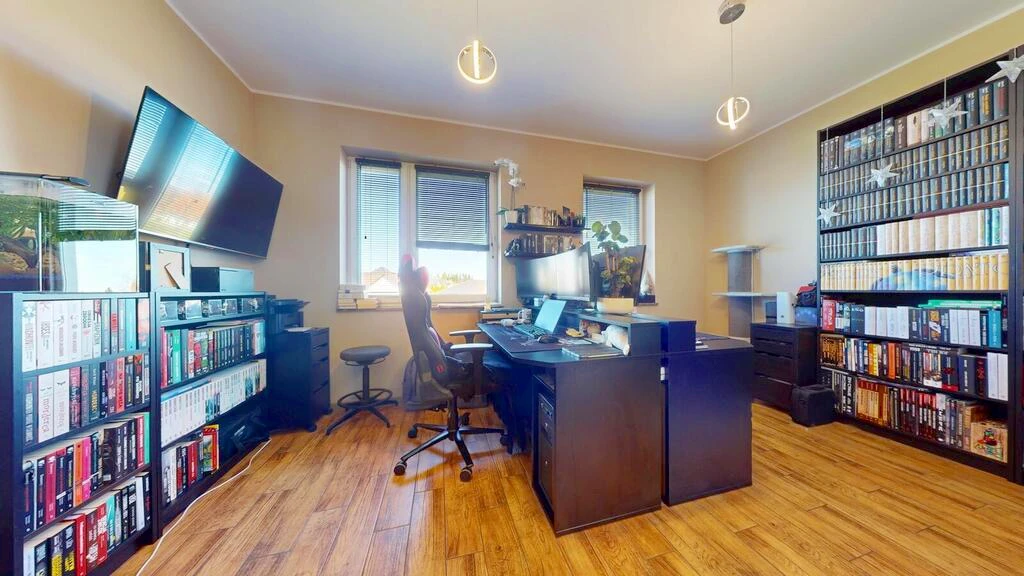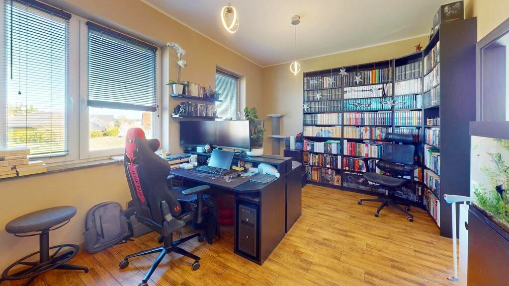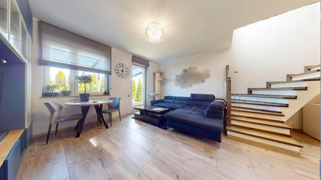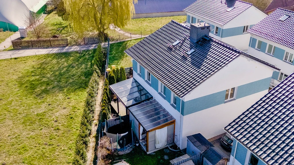 Dieses charmante Doppelhaus wurde 2017 erbaut und befindet sich in einer ruhigen Sackgasse einer geschlossenen Wohnanlage im Stadtteil Krzekowo – an der Grenze zwischen Szczecin und Mierzyn. Die Lage bietet eine ideale Kombination aus Ruhe und Nähe zur Stadt, mit guter Anbindung an das Zentrum sowohl mit öffentlichen Verkehrsmitteln als auch mit dem Auto.