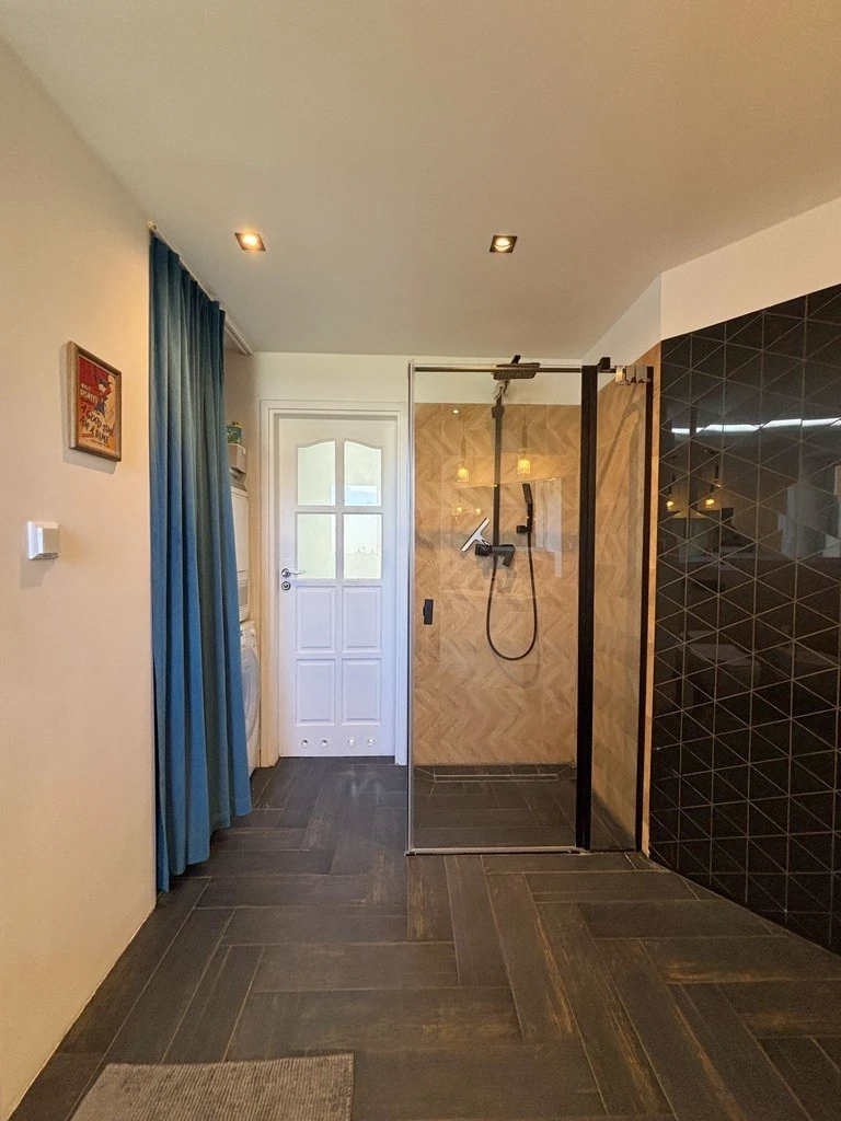Das Badezimmer wurde im Jahr 2023 komplett renoviert und bietet eine moderne Ausstattung: Dusche, Waschbecken, WC, Handtuchheizkörper, Bidet sowie ein Fenster für natürliche Belüftung. Wände und Boden sind mit stilvoller Keramik gefliest.