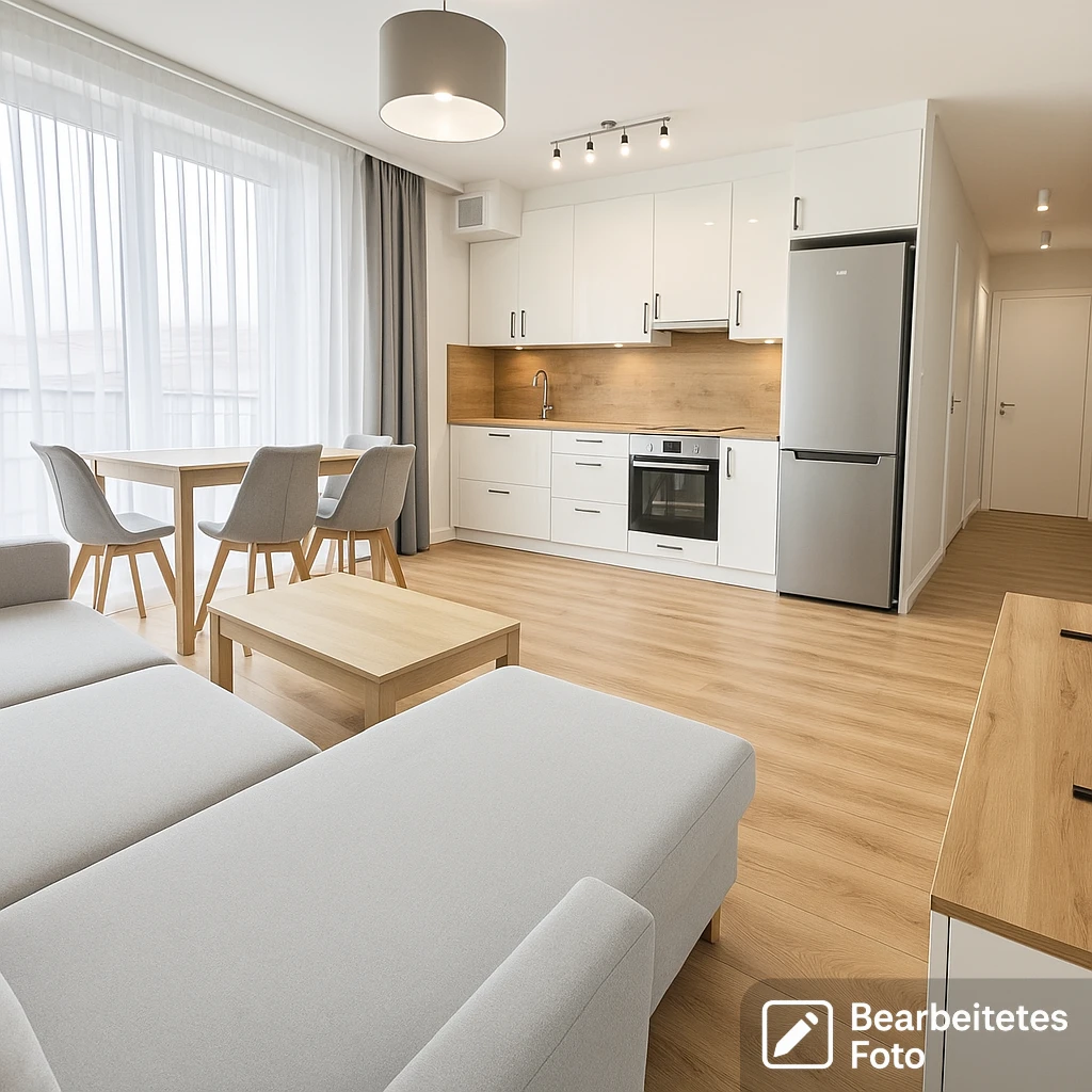 - Die Wohnung wird voll möbliert und ausgestattet angeboten – bereit zum sofortigen Einzug