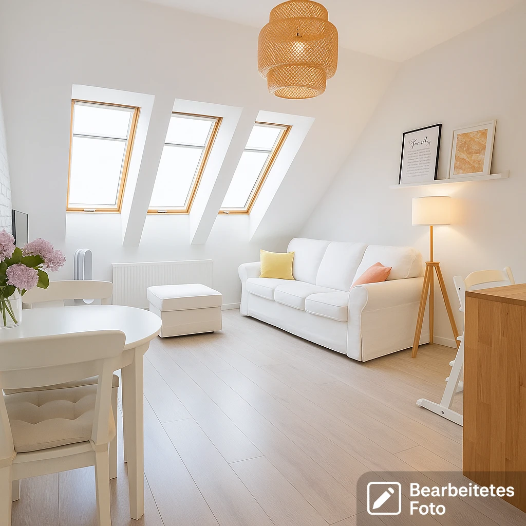 - Das erste Foto in unserer Galerie wurde leicht bearbeitet, um zu veranschaulichen, wie die Wohnung aussehen könnte – beispielsweise durch eine geänderte Wandfarbe. Die nachfolgenden Bilder zeigen den tatsächlichen Zustand der Immobilie.