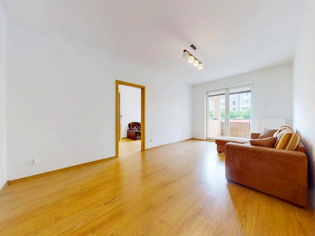 Das Wohnzimmer bietet direkten Zugang sowohl zum Balkon als auch zu einem der Schlafzimmer – dies schafft eine besonders komfortable Wohnstruktur.