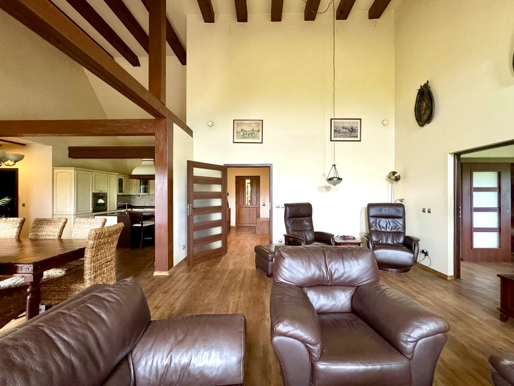 Zusätzliche Ausstattung: - Separates Apartment innerhalb des Gebäudes (83 m²) mit: - Wohnzimmer mit Küche - 2 Schlafzimmern - Badezimmer - Flur - Beheizt durch Fußbodenheizung (Wärmepumpe) - Gepflasterte Terrasse im Westen - Überdachte Halle mit knapp 100 m² Fläche - Photovoltaikanlage auf dem Dach mit 24 kW Leistung - Umzäuntes Grundstück mit Videoüberwachung aller Hauptbereiche