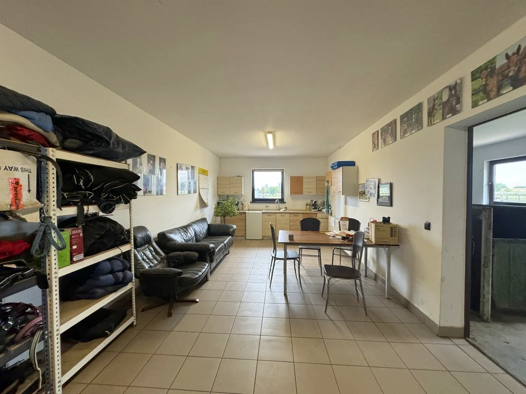 Stallausstattung: - 9 klassische Pferdeboxen (leicht demontierbar) - 2 große Boxen à ca. 30 m² - 2 Waschplätze für Pferde (mit Warm- und Kaltwasser) - Lagerflächen (ca. 60 m²) - Untersuchungsraum mit Fixierbox - 9 englische Außenboxen mit separatem Zugang und Überwachungssystem - Sattelkammer, Badezimmer, Untersuchungsraum – alle beheizt, mit Warm-/Kaltwasseranschluss