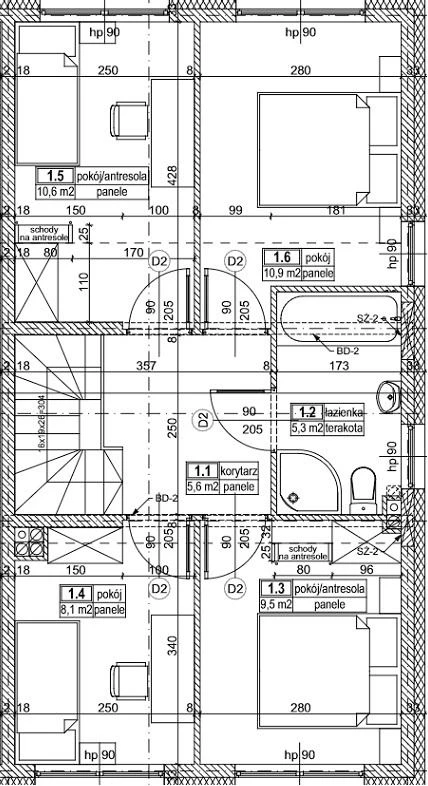 - Vier Schlafzimmer: 10,9 m², 10,6 m², 9,5 m² und 8,1 m²