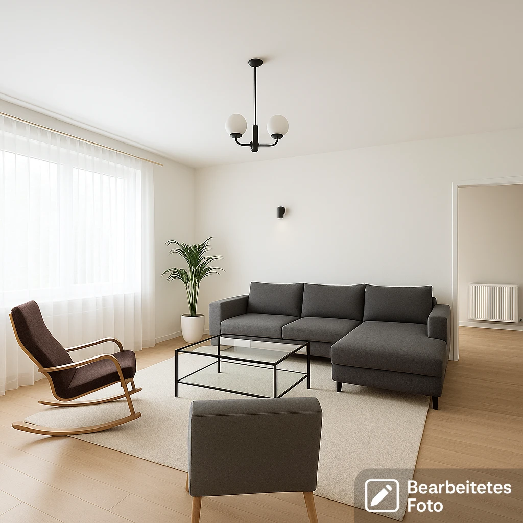 - Das erste Foto in unserer Galerie wurde leicht bearbeitet, um zu veranschaulichen, wie die Wohnung aussehen könnte – beispielsweise durch eine geänderte Wandfarbe. Die nachfolgenden Bilder zeigen den tatsächlichen Zustand der Immobilie.