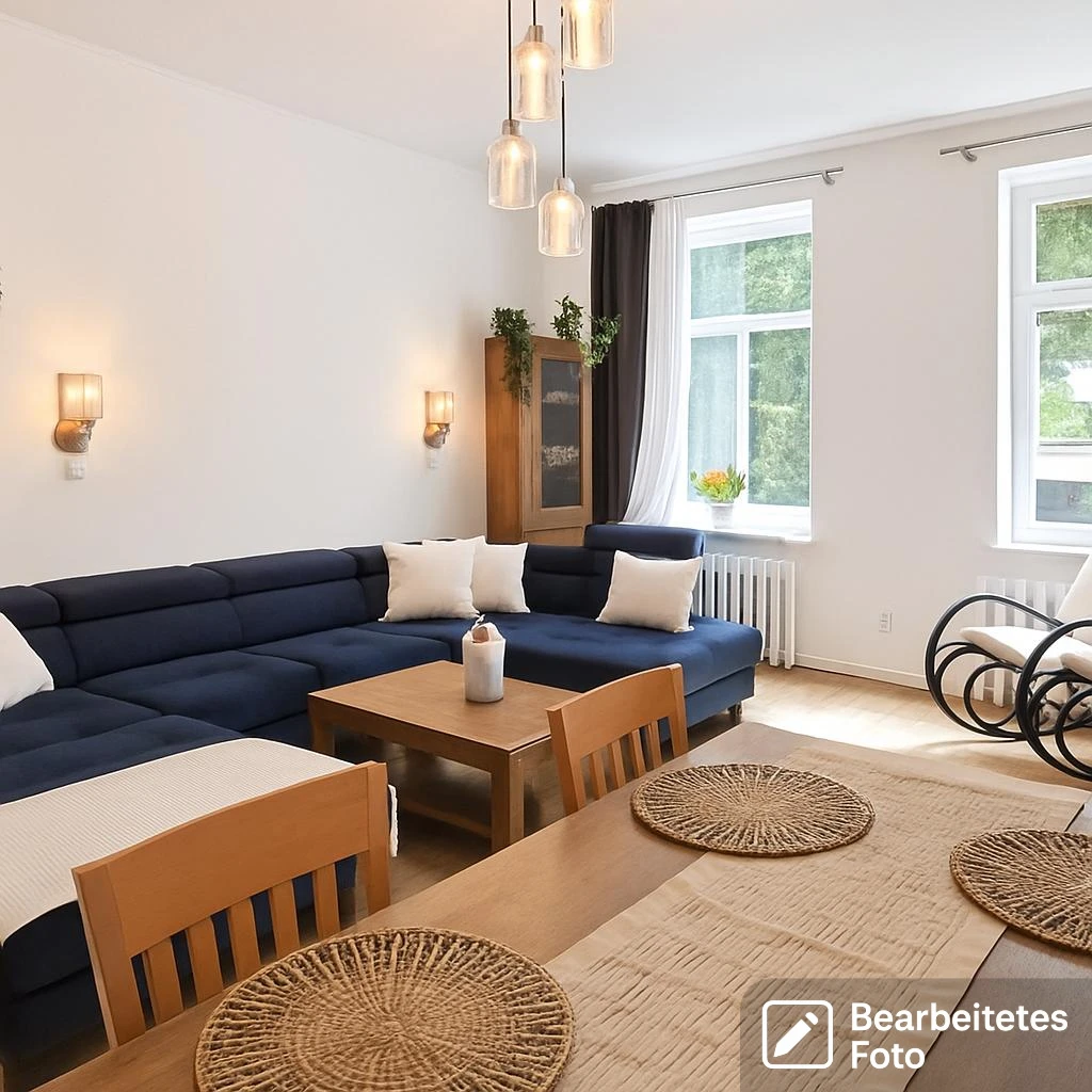 - Das erste Foto in unserer Galerie wurde leicht bearbeitet, um zu veranschaulichen, wie die Wohnung aussehen könnte – beispielsweise durch eine geänderte Wandfarbe. Die nachfolgenden Bilder zeigen den tatsächlichen Zustand der Immobilie.