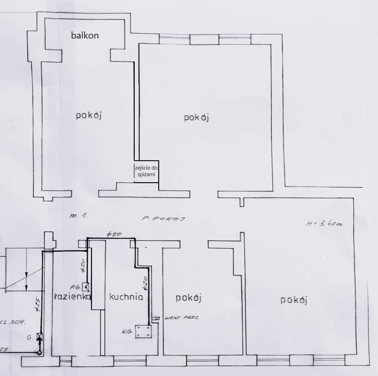 - Raumhöhe: bis zu 3,40 m (Flur leicht abgehängt)