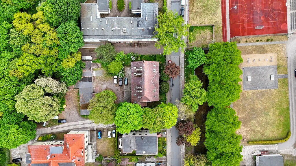 Die Wohnung liegt direkt am Chopin-Park – umgeben von Geschäften, Schulen, Spielplätzen, Grünflächen und mit hervorragender Anbindung an öffentliche Verkehrsmittel (Buslinien 2, 9, B).