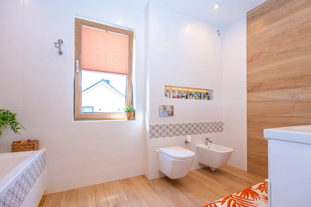 - Helles Badezimmer mit Badewanne, Bidet und WC