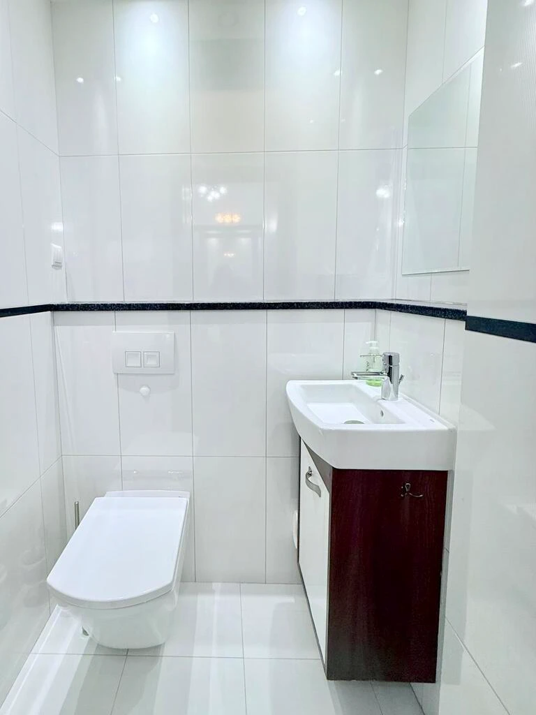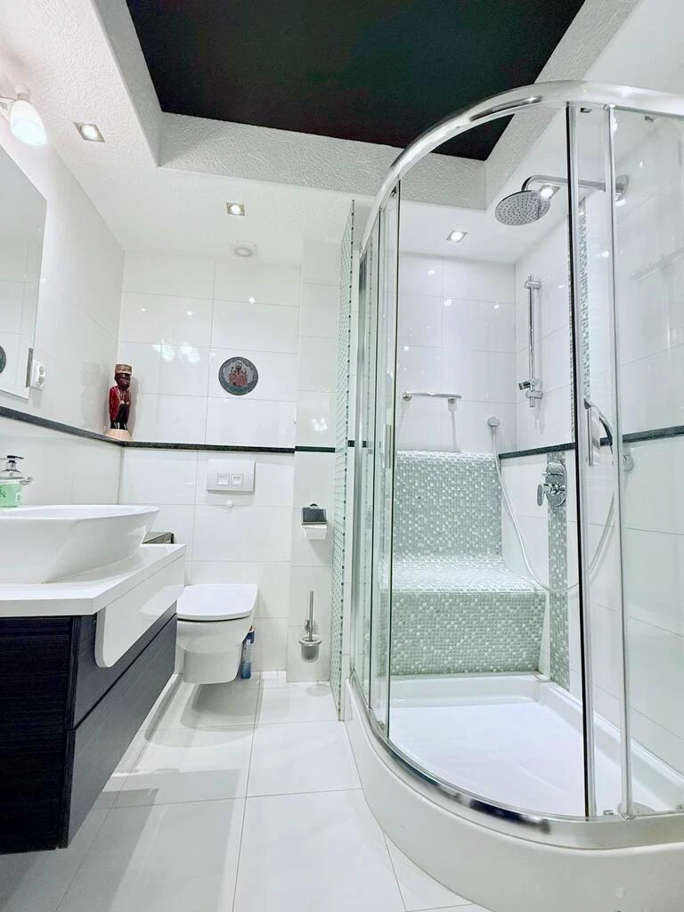 - Zweites Badezimmer mit Dusche (inkl. Sitzbank), ebenfalls modern gefliest