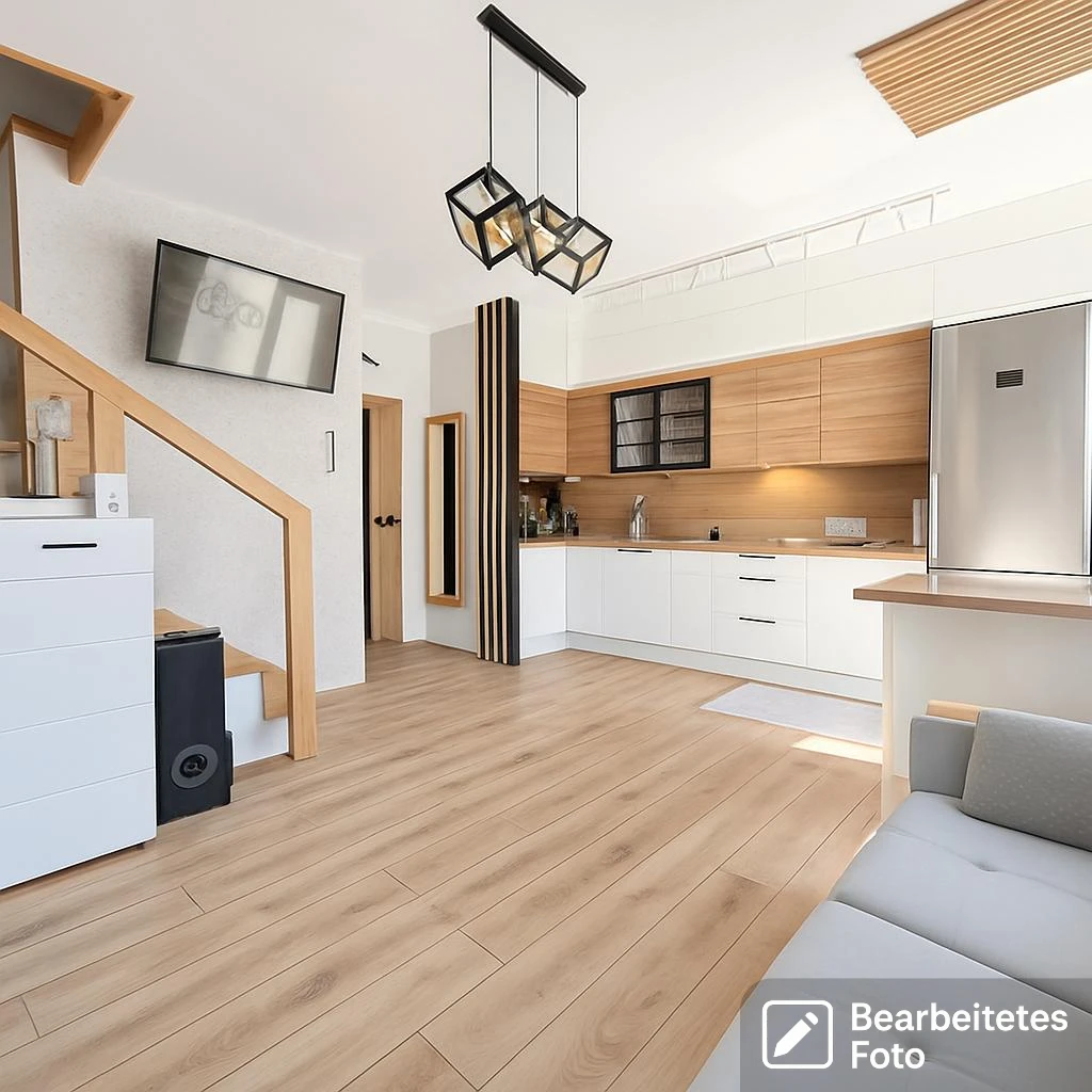 - Das erste Foto in unserer Galerie wurde leicht bearbeitet, um zu veranschaulichen, wie die Wohnung aussehen könnte – beispielsweise durch eine geänderte Wandfarbe. Die nachfolgenden Bilder zeigen den tatsächlichen Zustand der Immobilie.