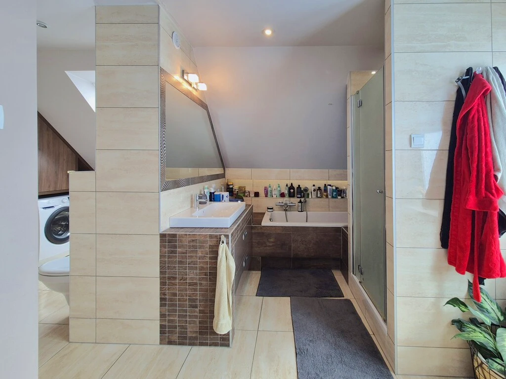 - Zugang zum großzügigem Dachboden mit moderaten Dachschrägen – ausbaufähig