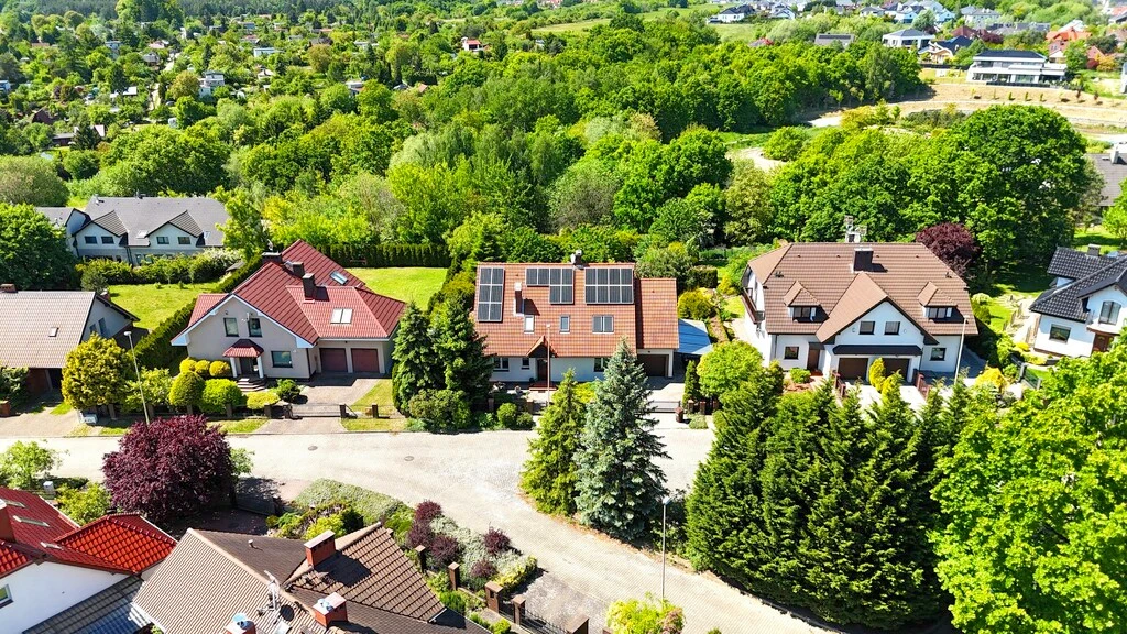 Das Haus liegt an einer ruhigen Anliegerstraße in Warszewo – ideal für alle, die Natur genießen möchten, ohne auf Infrastruktur verzichten zu müssen: