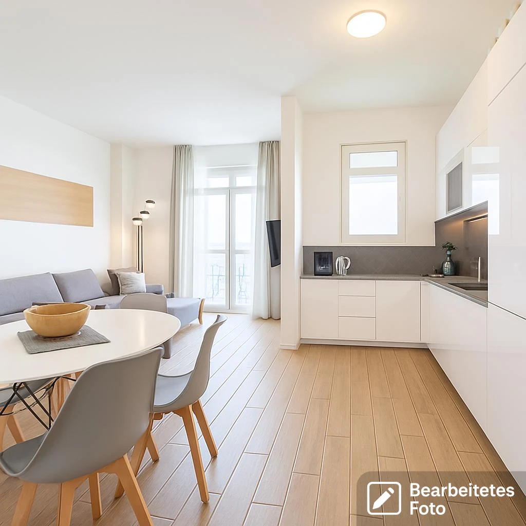 - Das erste Foto in unserer Galerie wurde leicht bearbeitet, um zu veranschaulichen, wie die Wohnung aussehen könnte – beispielsweise durch eine geänderte Wandfarbe. Die nachfolgenden Bilder zeigen den tatsächlichen Zustand der Immobilie.