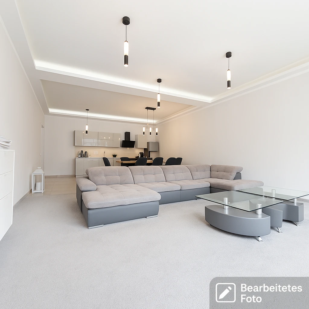 - Das erste Foto in unserer Galerie wurde leicht bearbeitet, um zu veranschaulichen, wie die Wohnung aussehen könnte – beispielsweise durch eine geänderte Wandfarbe. Die nachfolgenden Bilder zeigen den tatsächlichen Zustand der Immobilie.