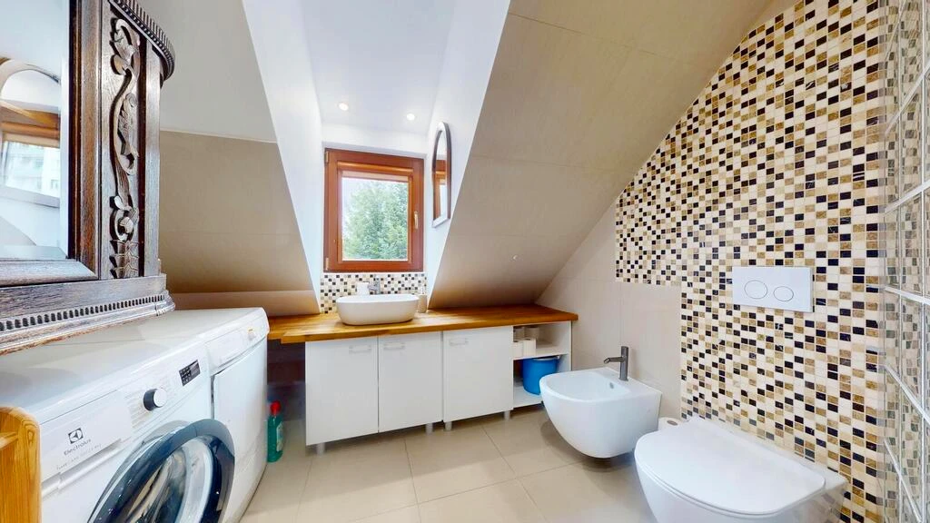 Zum Angebot gehört optional eine gemauerte Garage mit einer Fläche von ca. 15,5 m² sowie ein angrenzender Abstellraum mit ca. 7,29 m². Diese zusätzlichen Einheiten können für €18.700 (PLN 80.000) erworben werden – eine hervorragende Ergänzung, vor allem für Auto- oder Fahrradbesitzer oder als zusätzliche Lagerfläche.