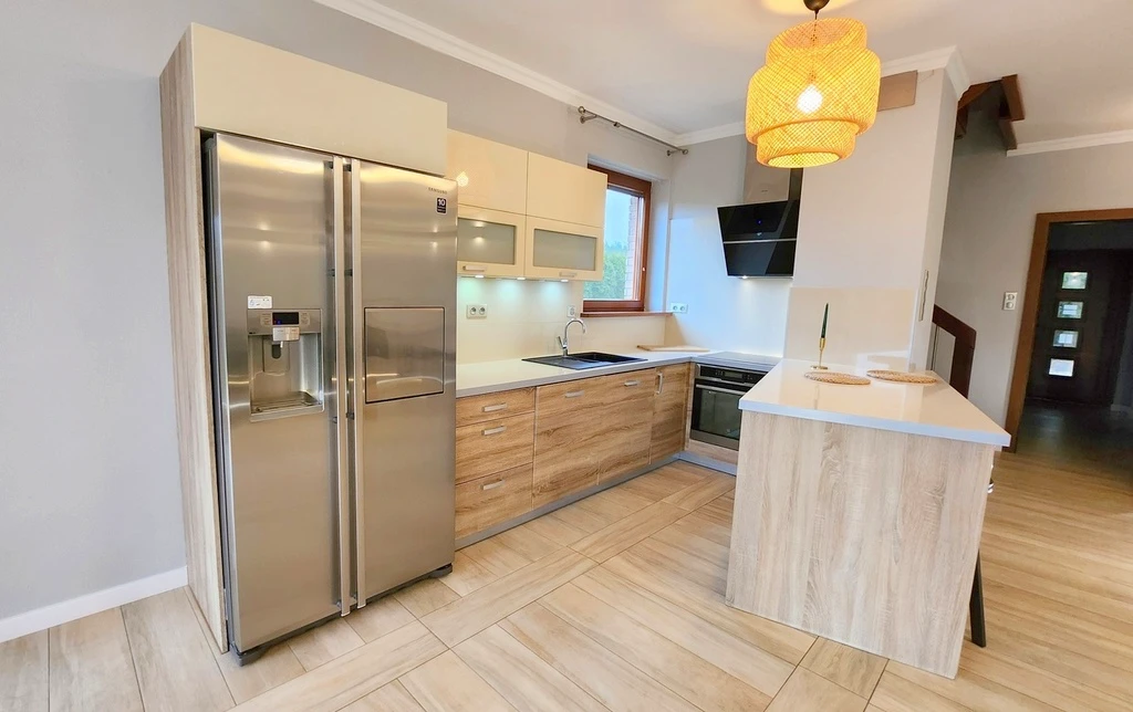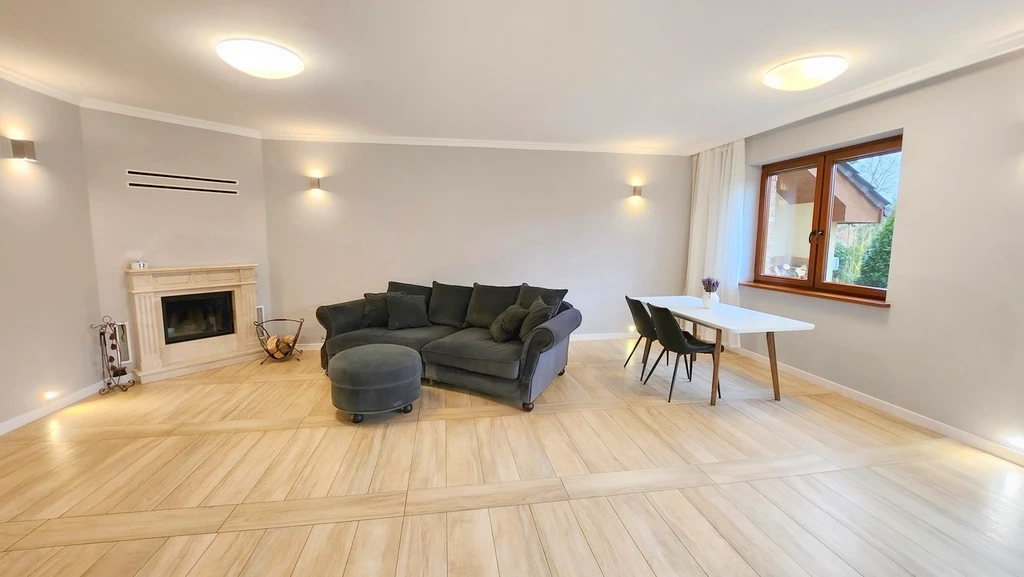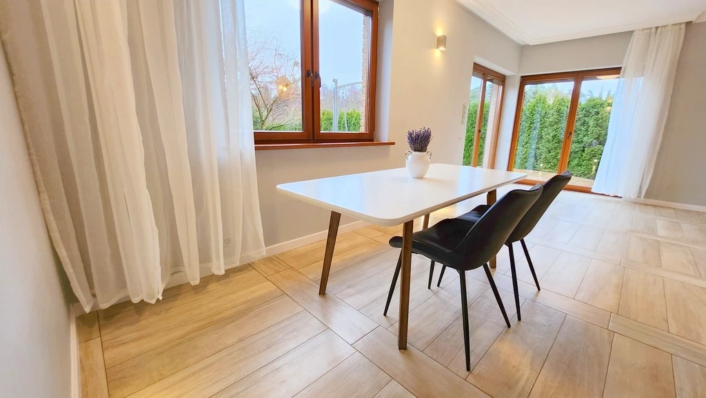Die Immobilie bietet geräumige Wohnbereiche und ist funktional aufgeteilt. Es gibt zwei moderne Badezimmer, eine offene Küche mit einem praktischen Küchenbereich sowie lichtdurchflutete Räume mit hochwertigen Holzfenstern. Das Haus ist eingeschossig (einschließlich Erdgeschoss).