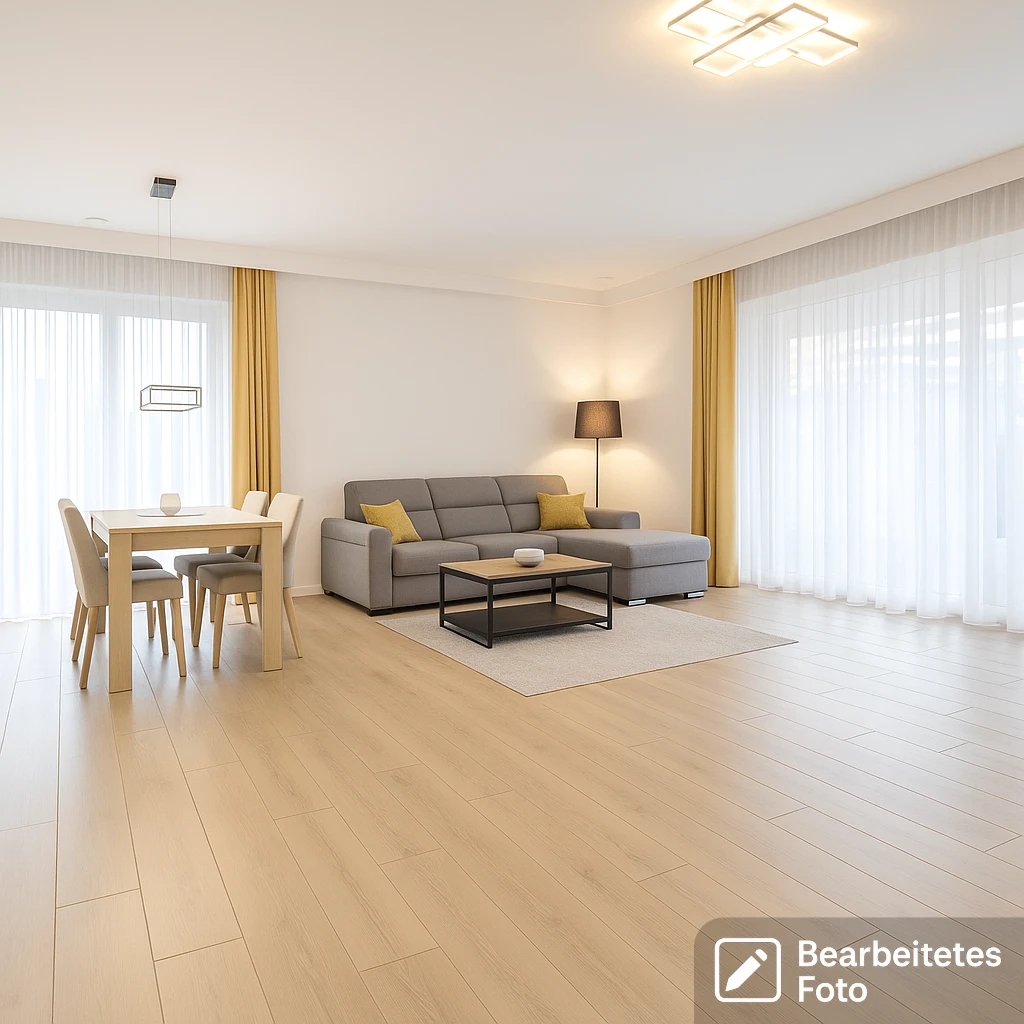 - Das erste Foto in unserer Galerie wurde leicht bearbeitet, um zu veranschaulichen, wie die Wohnung aussehen könnte – beispielsweise durch eine geänderte Wandfarbe. Die nachfolgenden Bilder zeigen den tatsächlichen Zustand der Immobilie.