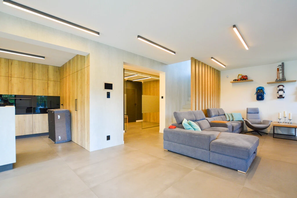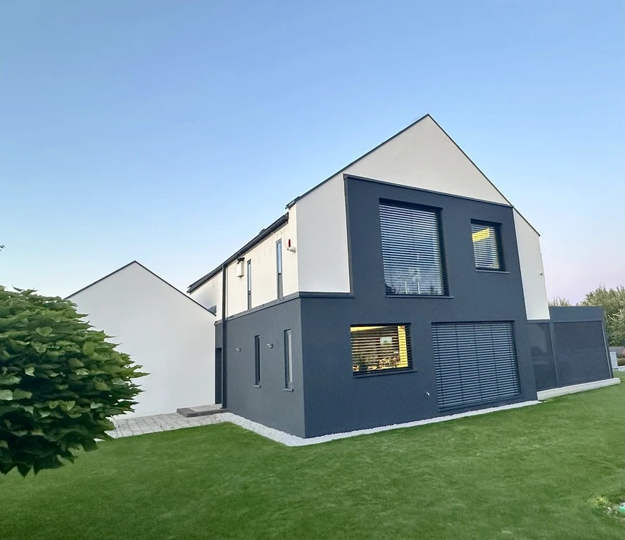 Willkommen in Ihrem neuen Zuhause! Dieses moderne Einfamilienhaus aus dem Jahr 2020 mit einer Wohnfläche von 237,9 m² befindet sich auf einem großzügigen, 1.607 m² großen Grundstück in einer der begehrtesten, ruhigen Straßen von Warzymice. Die grüne Umgebung und die Nähe zur Natur sorgen für eine entspannte Atmosphäre – ideal für alle, die Privatsphäre und Ruhe schätzen, aber nicht auf die Nähe zum Stadtzentrum und zur Grenze verzichten möchten.