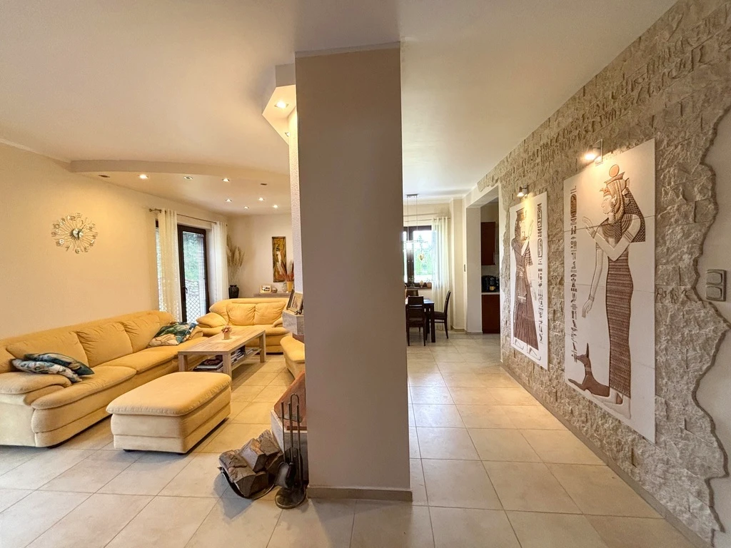 - Großzügiger Wohnbereich mit Kamin und Zugang zur weitläufigen Terrasse