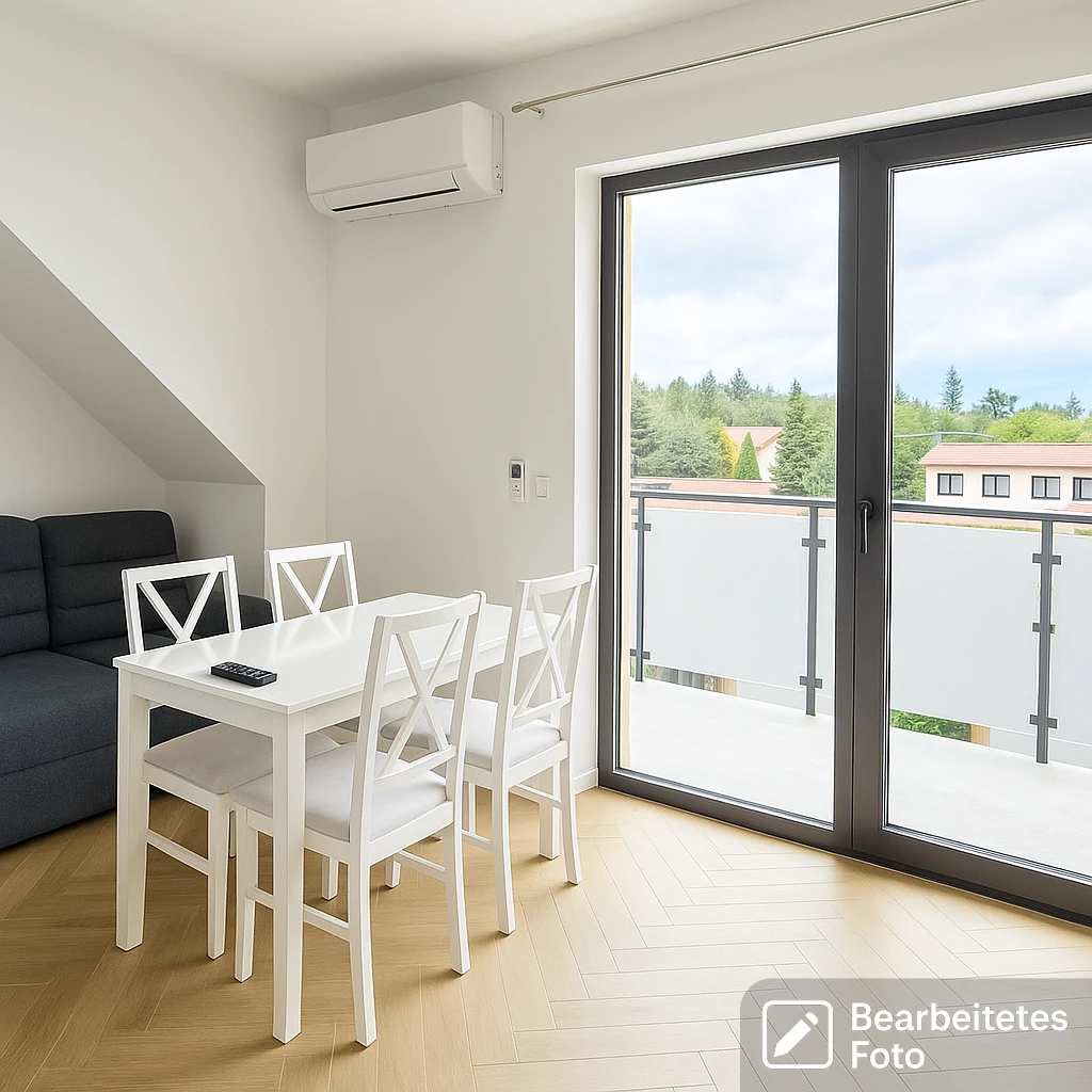 Jedes Apartment verfügt über einen eigenen Außenstellplatz sowie individuell steuerbare Klimaanlagen. Die moderne Innenausstattung sorgt für eine gemütliche und funktionale Atmosphäre – ideal für Urlaub oder Vermietung.