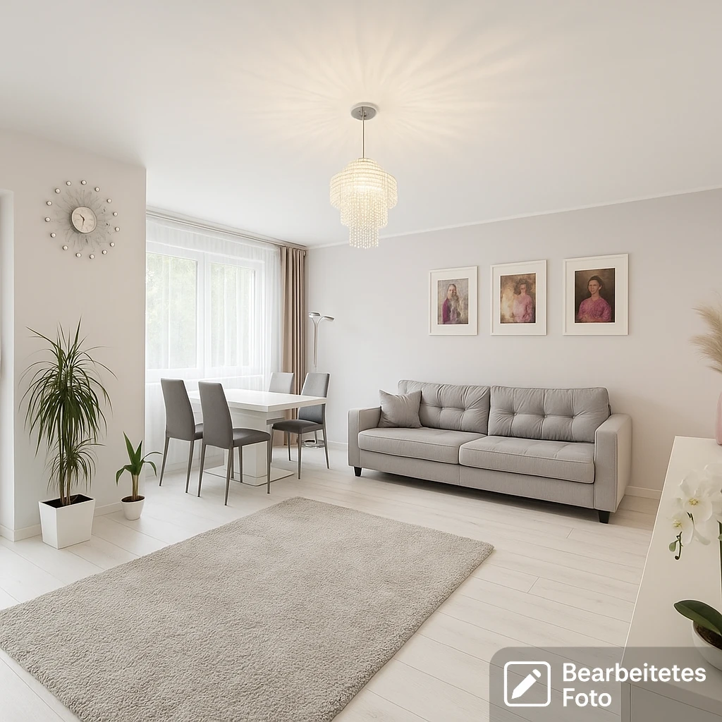 - Das erste Foto in unserer Galerie wurde leicht bearbeitet, um zu veranschaulichen, wie die Wohnung aussehen könnte – beispielsweise durch eine geänderte Wandfarbe. Die nachfolgenden Bilder zeigen den tatsächlichen Zustand der Immobilie.