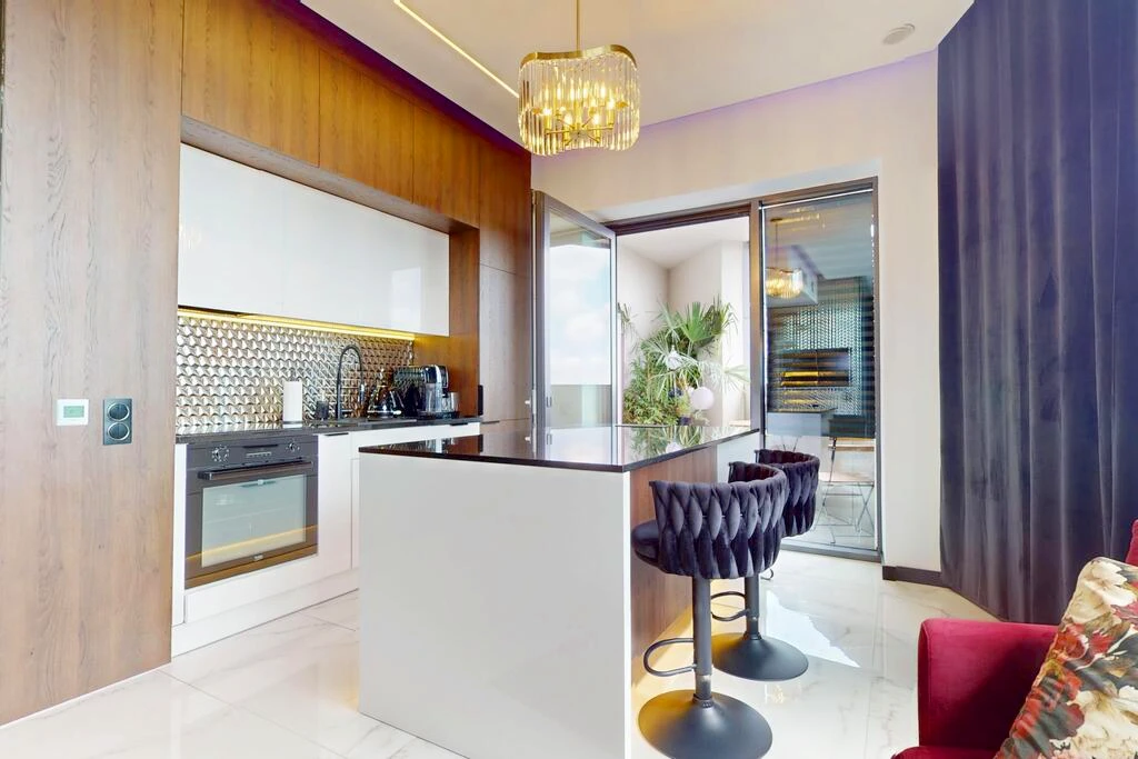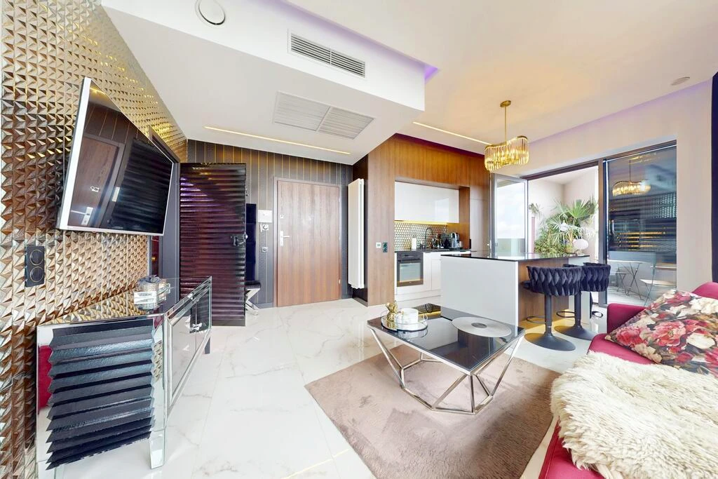 Die Architektur des Apartments wurde sorgfältig geplant, um die verfügbare Fläche optimal zu nutzen. Der Grundriss bietet sowohl Funktionalität als auch Wohnkomfort auf höchstem Niveau.
