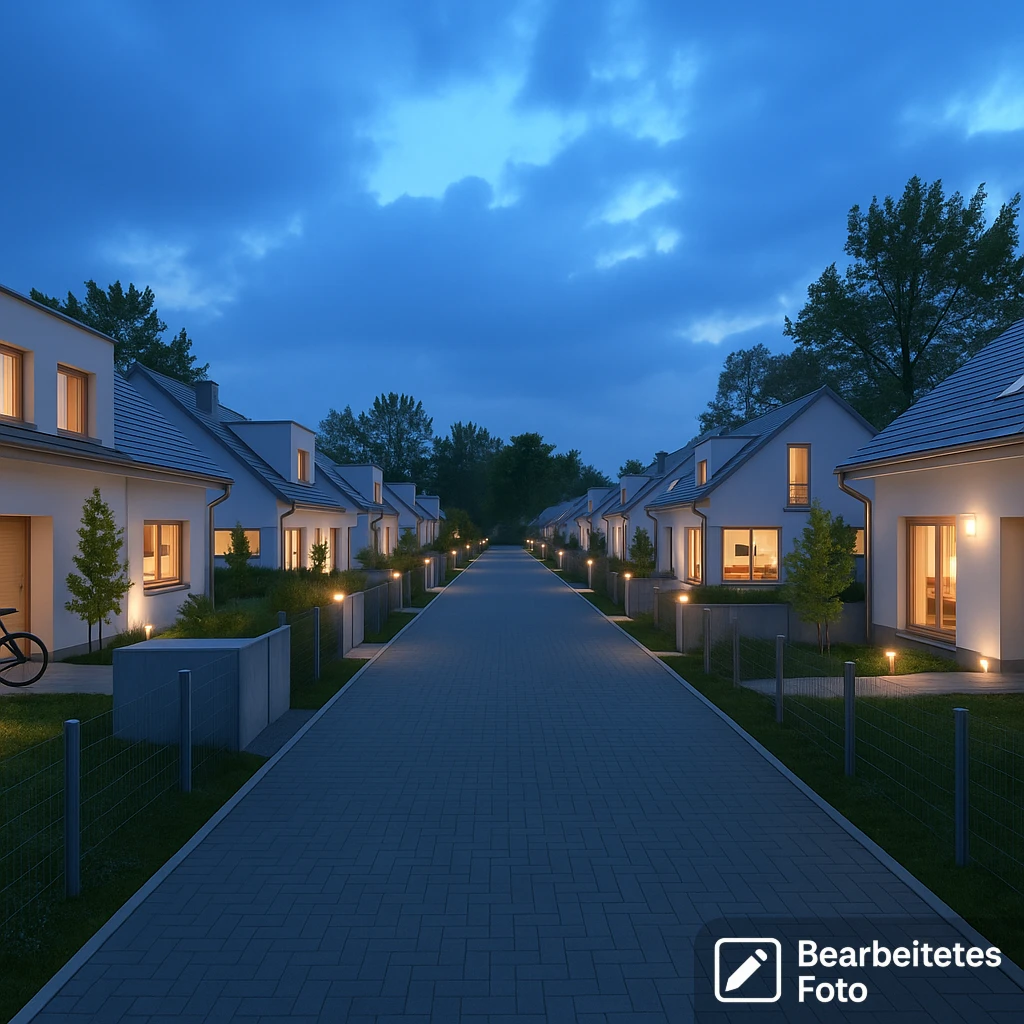 Wir präsentieren Ihnen moderne Immobilien in einem charmanten Wohnumfeld. Angeboten werden Doppelhaushälften sowie freistehende Einfamilienhäuser mit großzügigen Grundstücksgrößen – von 744 m² bis 884 m² bei freistehenden Häusern.