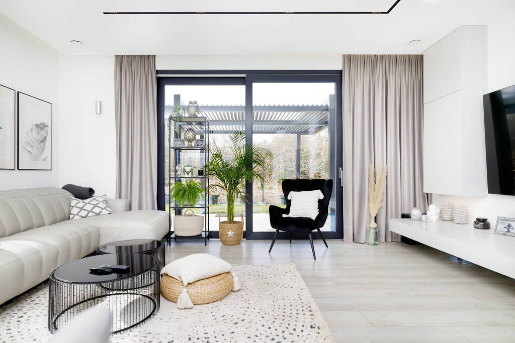 Das Haus wurde mit hochwertigen Materialien gemäß aktueller Energiestandards errichtet. Eine 20 cm starke Dämmung aus grauem Styropor, Dreifachverglasung mit elektrischen Außenrollläden sowie ein modernes Lüftungssystem mit Wärmerückgewinnung (Rekuperation) sorgen für niedrige Betriebskosten und ein angenehmes Raumklima.