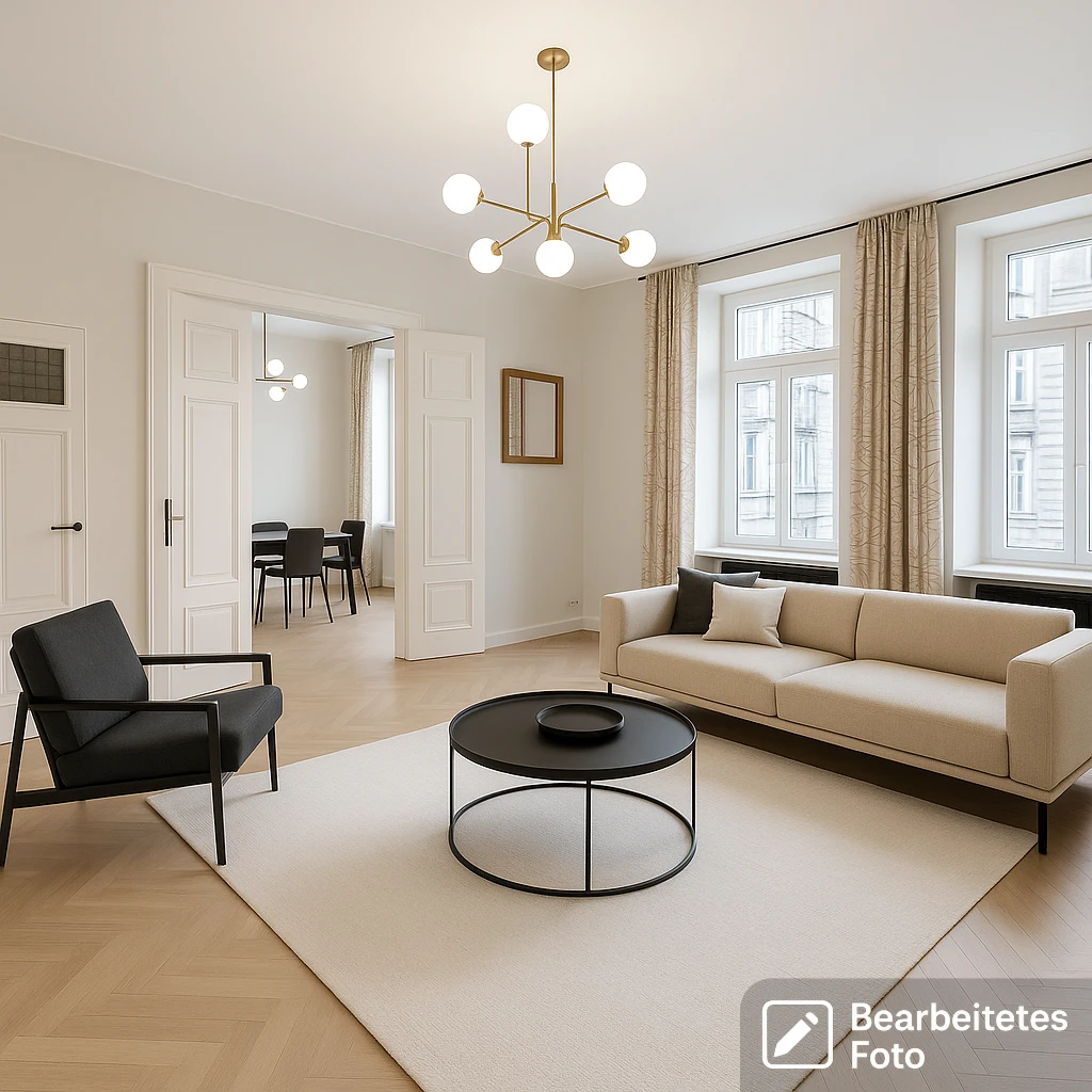 - Das erste Foto in unserer Galerie wurde leicht bearbeitet, um zu veranschaulichen, wie die Wohnung aussehen könnte – beispielsweise durch eine geänderte Wandfarbe. Die nachfolgenden Bilder zeigen den tatsächlichen Zustand der Immobilie.
