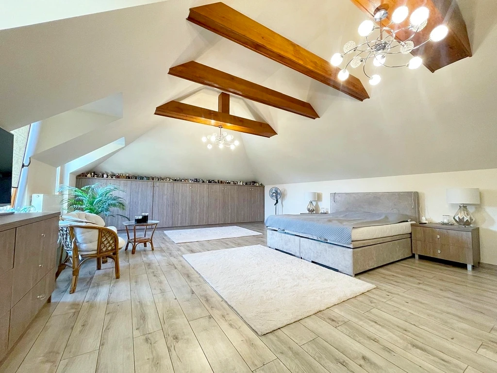 Eine sehr große und stilvoll eingerichtete Schlafzimmerfläche von ca. 54 m² bietet maximalen Wohnkomfort und Rückzugsmöglichkeiten.