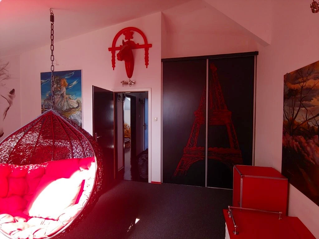 - Gemütliches Lese- oder Gästezimmer mit Teppichboden und großem Einbauschrank