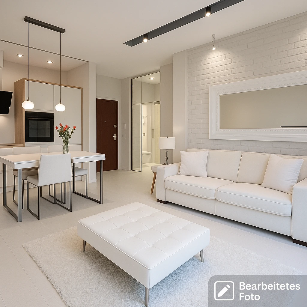 - Das erste Foto in unserer Galerie wurde leicht bearbeitet, um zu veranschaulichen, wie die Wohnung aussehen könnte – beispielsweise durch eine geänderte Wandfarbe. Die nachfolgenden Bilder zeigen den tatsächlichen Zustand der Immobilie.