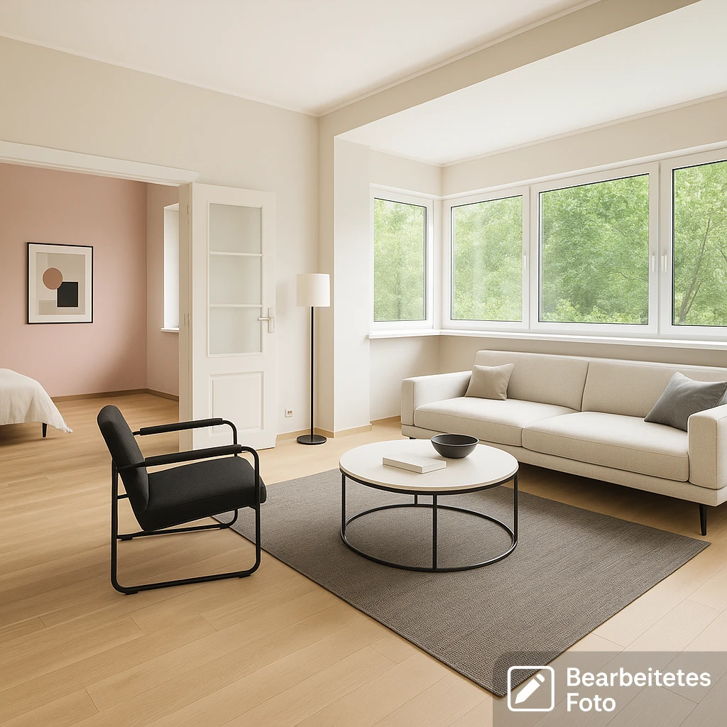 - Das erste Foto in unserer Galerie wurde leicht bearbeitet, um zu veranschaulichen, wie die Wohnung aussehen könnte – beispielsweise durch eine geänderte Wandfarbe. Die nachfolgenden Bilder zeigen den tatsächlichen Zustand der Immobilie.