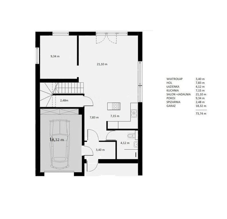 - Garage mit automatischem Tor: 18,32 m²