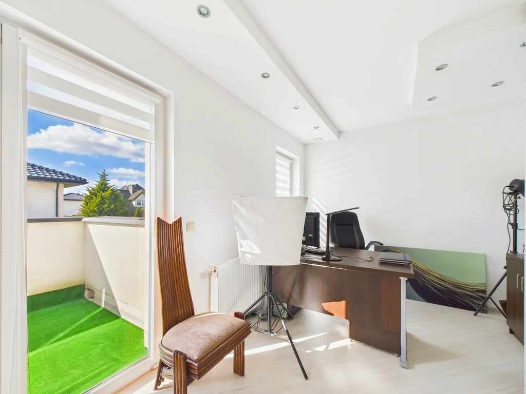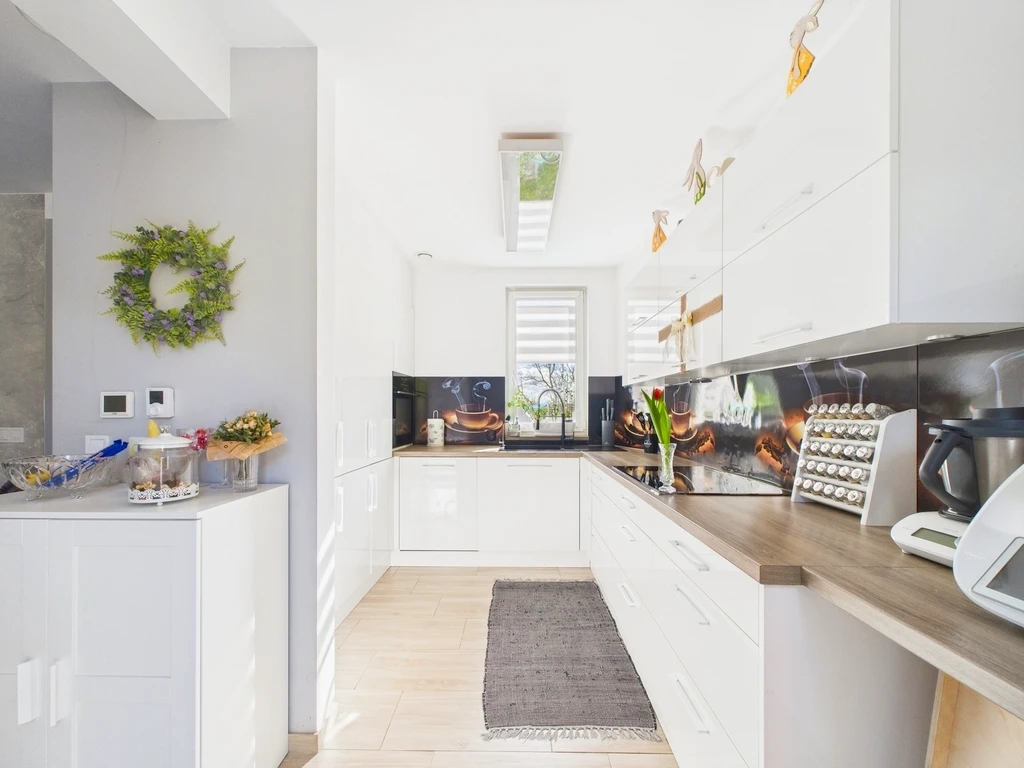 Entdecken Sie dieses stilvolle und gepflegte Zuhause mit einer Wohnfläche von ca. 120 m², gelegen auf einem 280 m² großen, rechteckigen Grundstück in ruhiger Wohnlage von Mierzyn. Das 2016 erbaute Haus bietet ein ideales Wohnkonzept für Familien, die sowohl Grünflächen als auch eine gute Anbindung an das Stadtzentrum schätzen.