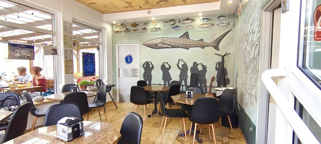 Die Immobilie ist Sitz der renommierten Gastronomiemarke mit eindrucksvoller Geschichte, zahlreichen Auszeichnungen und einer treuen Stammkundschaft. Ihre Gäste schätzen nicht nur die ausgezeichnete Küche mit Schwerpunkt auf Fisch- und Meeresfrüchtespezialitäten, sondern auch das unverwechselbare Restaurantdesign, entworfen von einem bekannten Maler, Bildhauer und Fotografen.