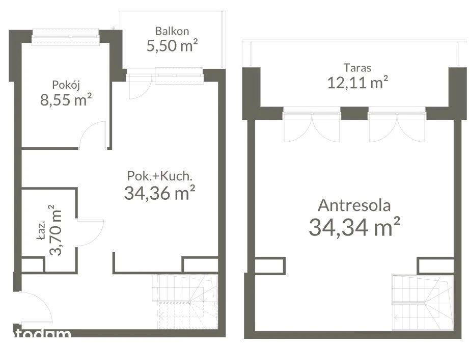 - Galerie / 2. Schlafzimmer (auf der oberen Ebene): 34,36 m²
