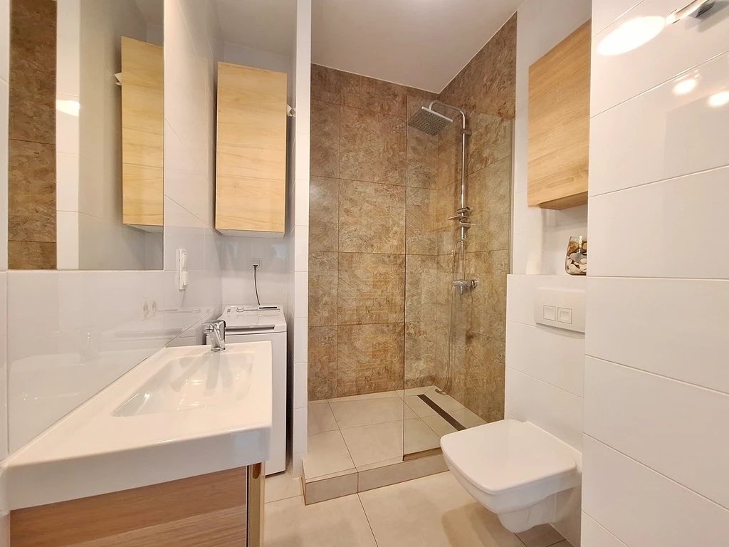 Die Wohnung liegt in einem modernen Wohnblock mit nur zwei Etagen (inkl. Erdgeschoss) und verfügt über einen Aufzug, was den Alltag besonders komfortabel macht.